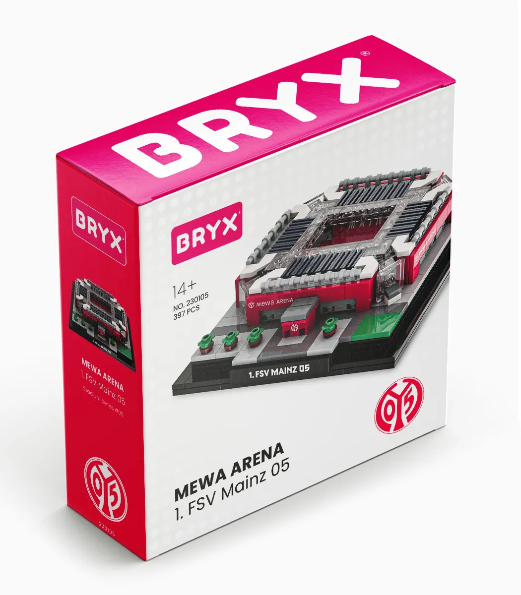 Detailreiches BRYX‑Modell der MEWA ARENA. Klemmbaustein‑Miniatur für Mainz‑05‑Fans und Sammler. Perfekt für Regal, Büro oder Fan‑Zimmer.