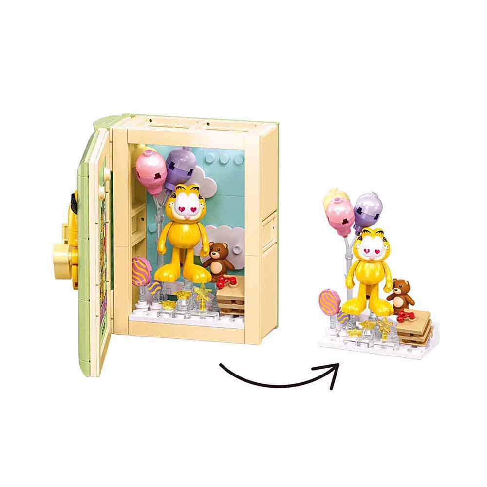 Innovatives Design: Das besondere an diesem Set ist das aufklappbare Buch, das nicht nur als Baugrundlage dient, sondern auch ein einzigartiges und dekoratives Element ist. Im Inneren verbirgt sich die kuschelige Szene mit Garfield und seinem Teddy.