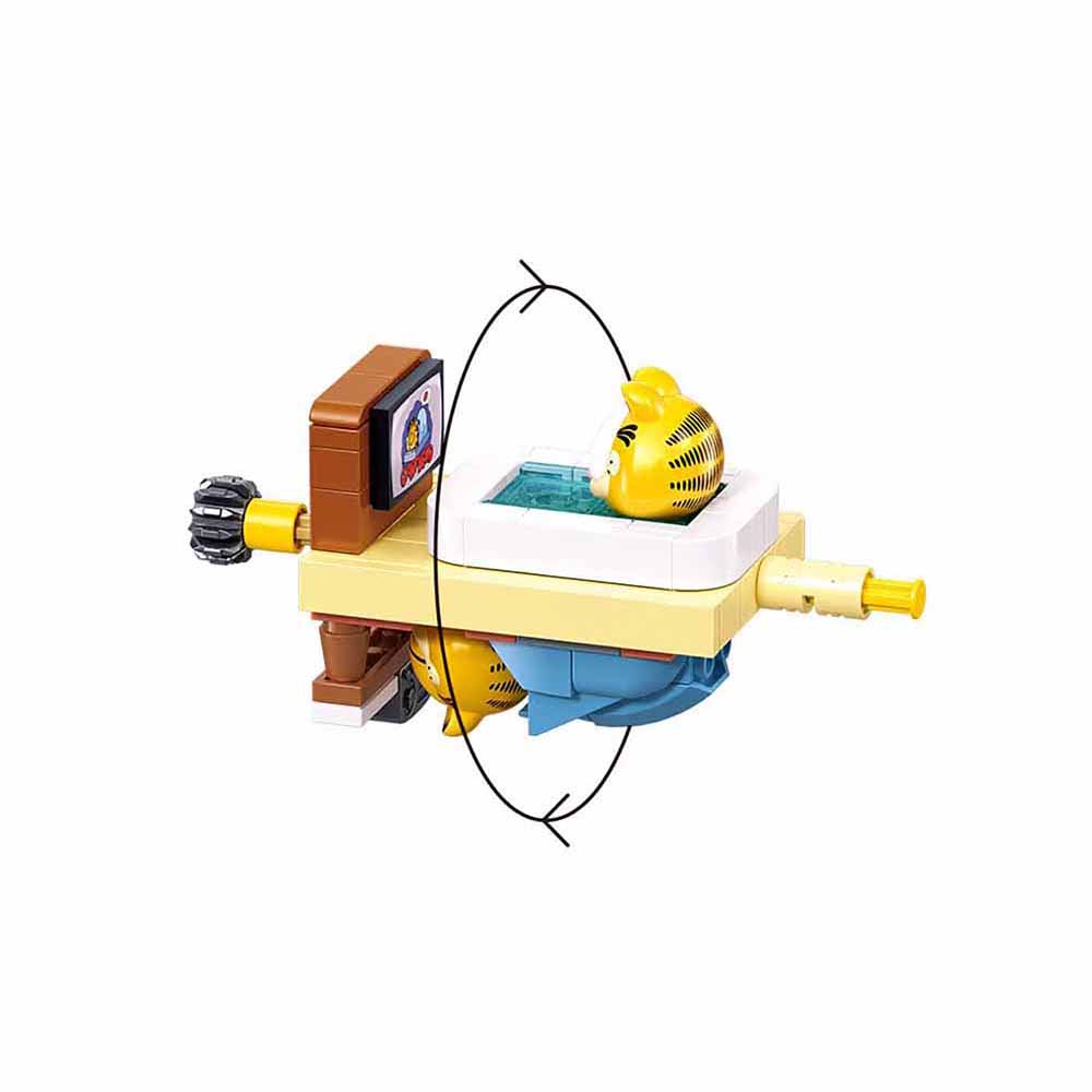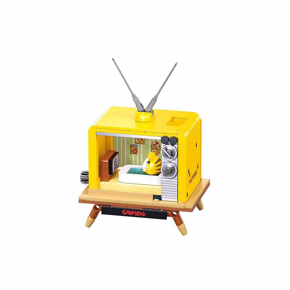 Innovatives Design: Das Highlight dieses Sets ist der retro-stilisierte Fernseher, der als zentrales Element dient. Die Szene ist so gestaltet, dass Garfield entspannt davor sitzt, was die typische Atmosphäre des Comics einfängt.