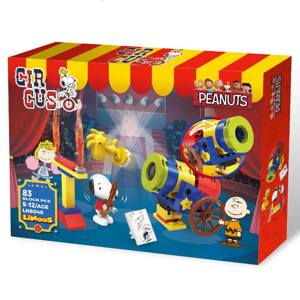 Mit dem Linoos Peanuts Kanonenshow LN8046 Set baust du die legendäre Zirkus‑Szene nach, in der Woodstock in Snoopys Kanone steigt. Das Set enthält 83 Klemmbausteine sowie die Figuren Snoopy, Woodstock und Marcie – ideal für Kinder von 5–12 Jahren, Peanuts‑Fans und Sammler.