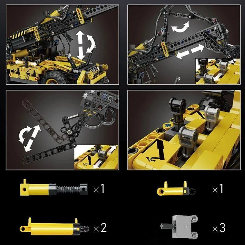 Dank vier integrierter pneumatischer Kolben verfügt der Stapler über voll funktionsfähige Technikmechanismen – darunter Heben und Senken, bewegliche Gabeln und ein teleskopierbarer Ausleger. Diese Funktionen machen das Modell nicht nur optisch beeindruckend, sondern auch spielerisch vielseitig.