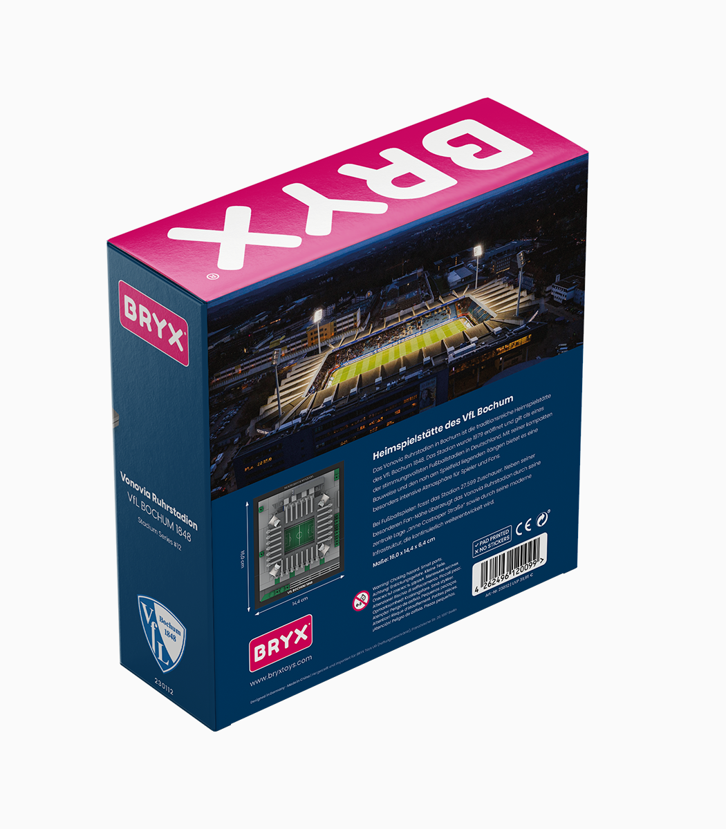 Mit dem BRYX Stadion-Set holst du dir ein Stück Bochumer Fußballkultur direkt nach Hause. Ob als dekoratives Highlight im Regal oder als Teil deiner Klemmbaustein-Sammlung – dieses Set vereint Leidenschaft, Kreativität und Vereinsliebe.